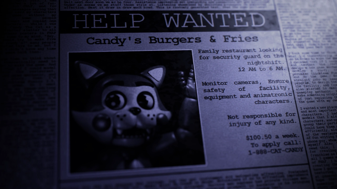 - The phone number in the newspaper, "1-888-CAT-CANDY" is also a parody of number "1-888-FAZ-FAZBEAR" from Five Nights at Freddy's.