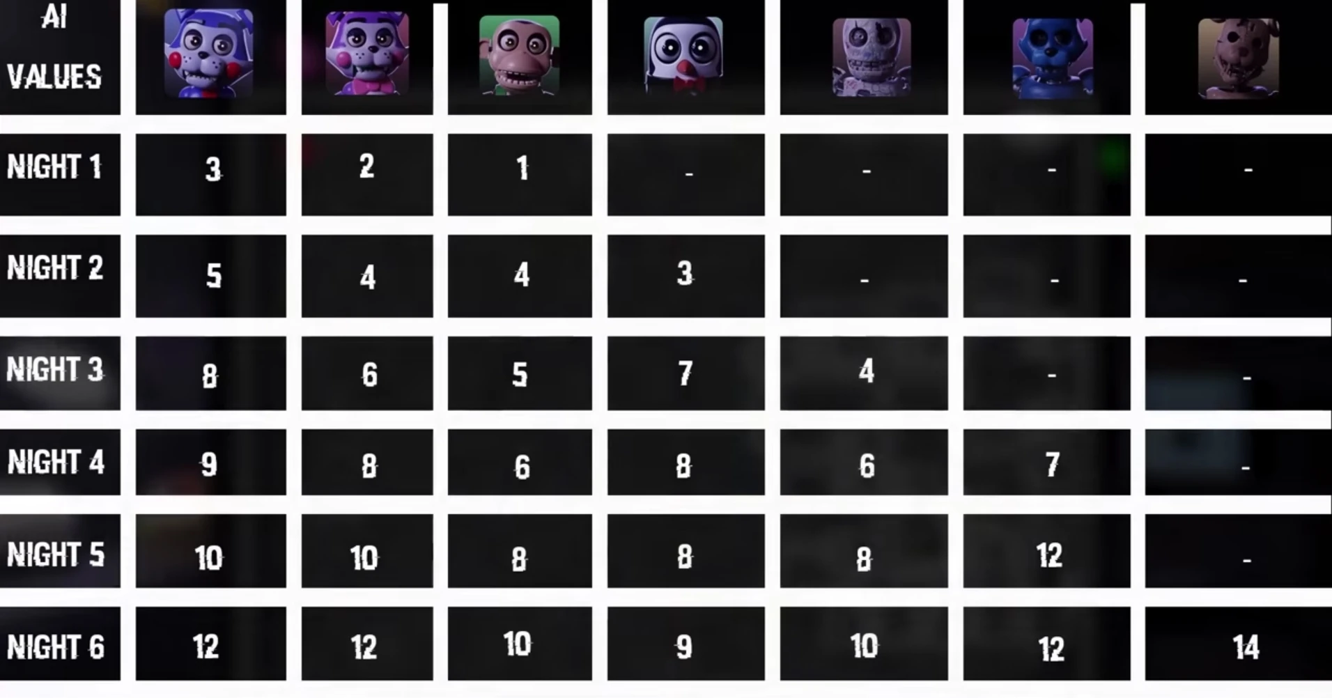 AI Values are pre-determined each night (except for Night7) according to this table: