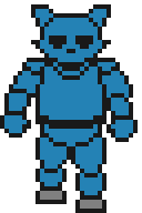 It should be noted that because he does not have glowing eyes, there will be no way to see him in the cameras unless the player uses night vision. This also applies to when Old Candy is at the player's door; the only way to see if Old Candy is at the door is by looking extremely closely. If he is there, there is a hint of blue that you may be able to see. This hint of blue is present in the original game, but not FNaC Remastered.