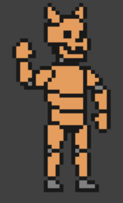 He is almost ironically similar to RAT. They both have the same dominant color. However, Cat has a cat shaped head unlike RAT, as he has a rat shaped head, to differentiate their species, respectively. Cat also has hollowed eyes, with the right eye bearing stitches. Like RAT, he has a stitch running across his head and the same joints, yet, he doesn't have a metallic skin or layer showing.
